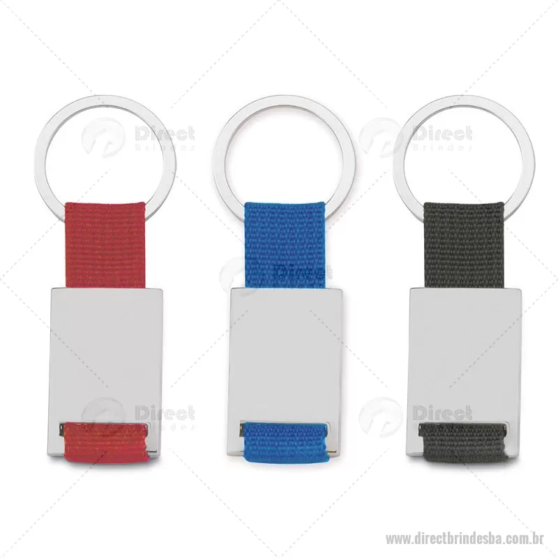Chaveiro de metal retangular com detalhes em nylon + caixa com berço aveludado. Obs.: Frente e versão são iguais. Dimensão Produto: 8,5x3,4cm (AxL) Peso do Chaveiro: 0,025kg Peso do berço aveludado: 9g - - DRTBACHV214