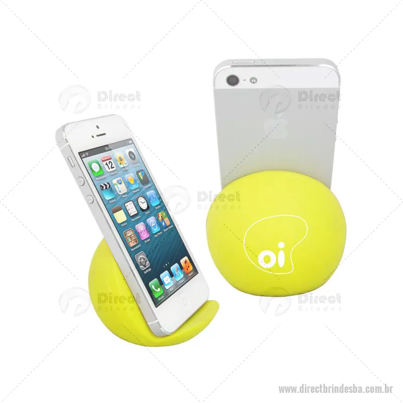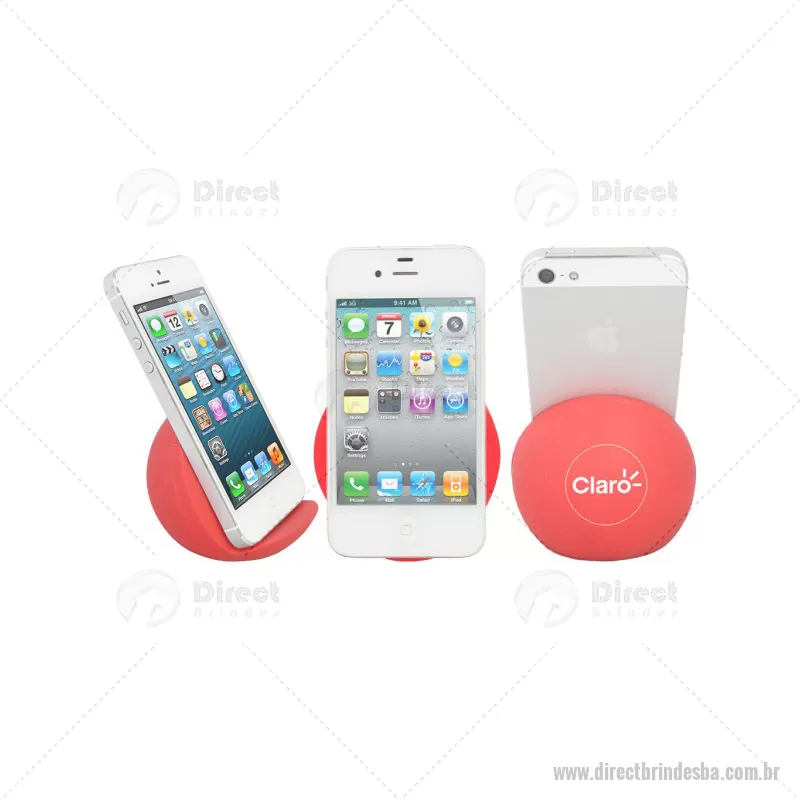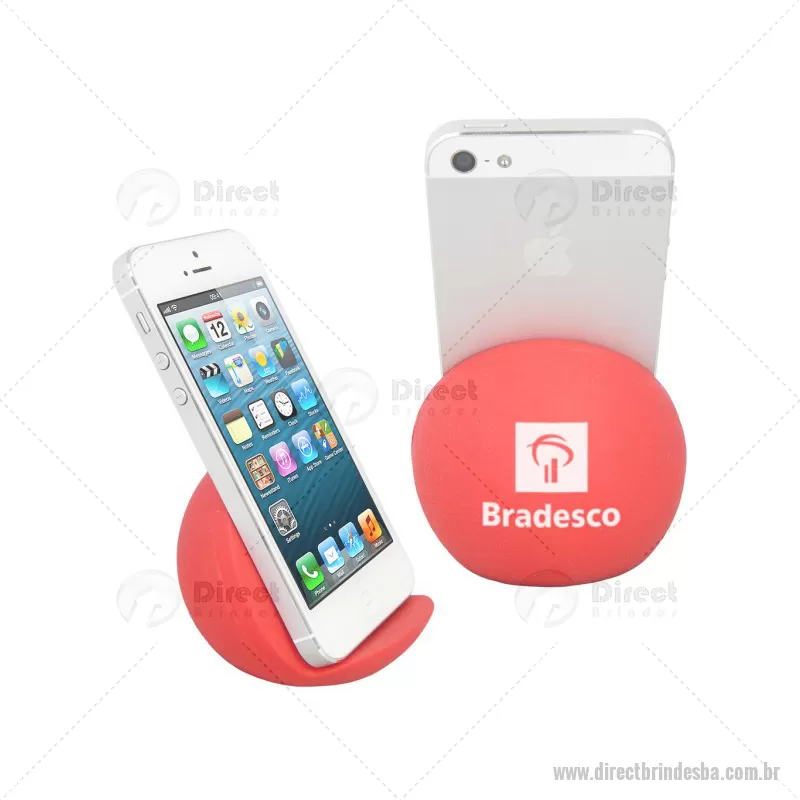Porta celular / Apoio para smartphone de mesa Personalizado. Feito em vinil oca e disponível em várias cores. Material: Vinil - Especificação: Vinil (Policloreto de vinil) Disponível nas cores: vermelho, azul, azul escuro, azul claro, verde, verde escuro, verde claro, amarelo, laranja, preto, branco. Informação: Pantones específicos a partir de 1000 peças. Tipo de gravação: Tampografia Area de gravação: 40mm Ø Medida Produto: 65mm A x 75mm L x 70mm Peso: 45g Quantidade Mínima: 100 un - - DRTBATEC065